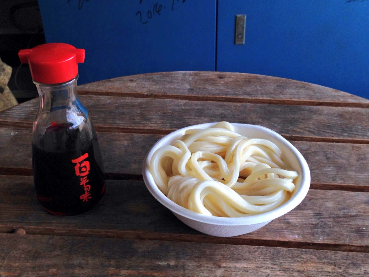 器とお箸としょうゆを持って行きました。が、結果的にはお店の人が出してくれたしょうゆを使わせてもらうことに。いつもあるわけではなさそうです。お店の人はとても親切で、のんびりとした気分でおいしいうどんをいただきました。讃岐ならではの、普通のお店では味わえないうどん体験ができると思います。空港通り駅からたんぼの間を抜けて、大きな通りに出るとお店がありました。なんとも形容しがたい道順です。そもそも徒歩で行く人はほとんどいないかもしれません。