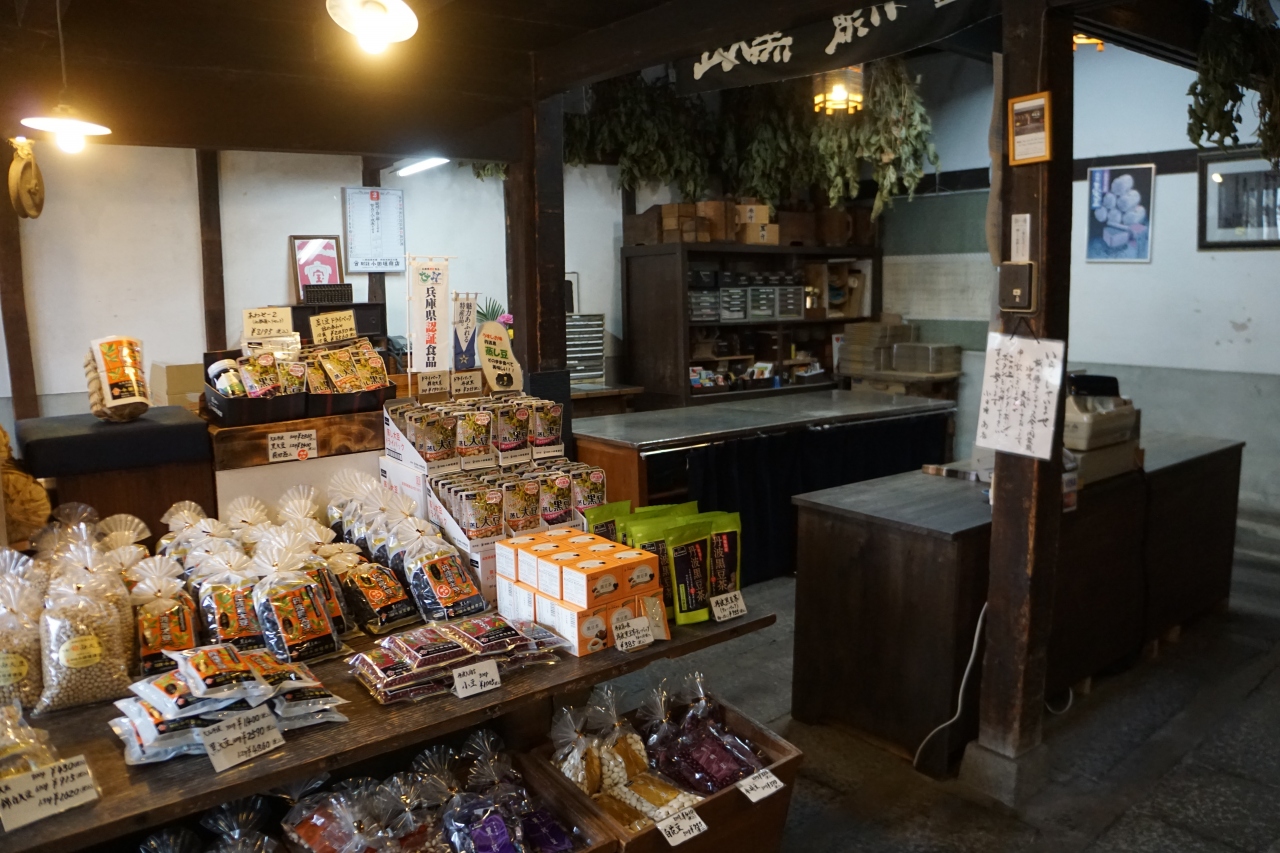 小田垣商店は、篠山市街中心部から河原町妻入商家群に向かう途中。塀に囲まれて、敷地内には大きな蔵も建つ、古くからの豪商風の店構え。ちょっと圧倒されるような感じですね。