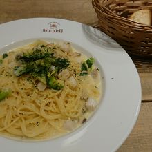 パスタは細麺で、食べているうちに腰がなくなるのが残念です