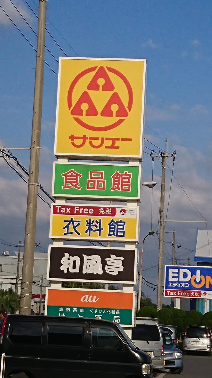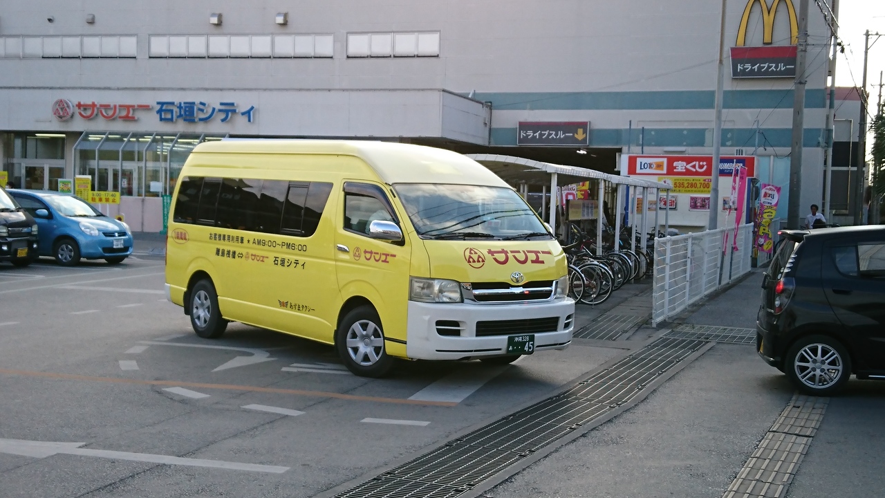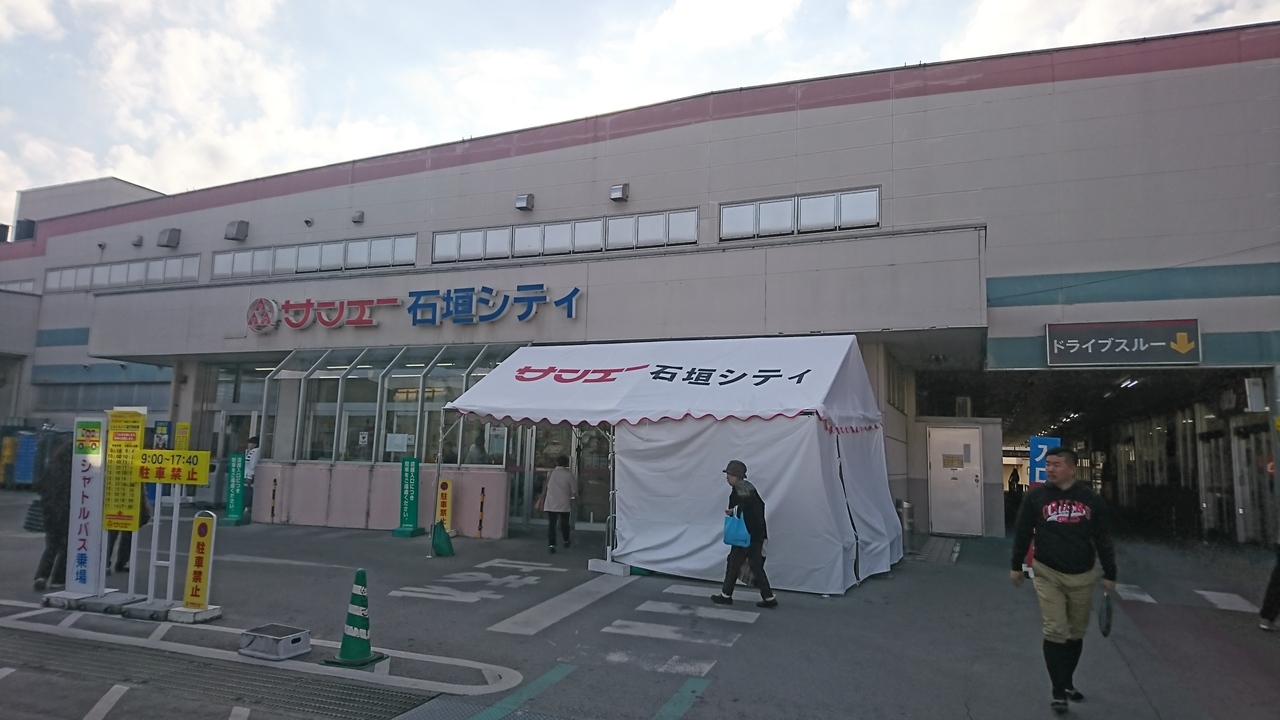 石垣島のサンエー。東バスの「サンエー前」停留所の目の前にあり、お隣はマックスバリュ(AEON)という石垣島一激戦区にあります。お店にはマクドナルドや和風亭、宝くじの販売所、auショップ、クリーニング店等々が揃うショッピングモール。品揃えは沖縄本島のサンエーと同レベルで、基本的には地元向けのスーパーなので、沖縄食材が充実しているほか、観光客向けのお土産も揃っています。また、離島ターミナルからシャトルバスか運行されており便利。