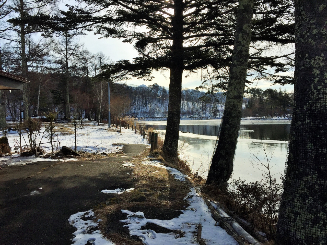 冬の蓼科湖は閑散としていました。