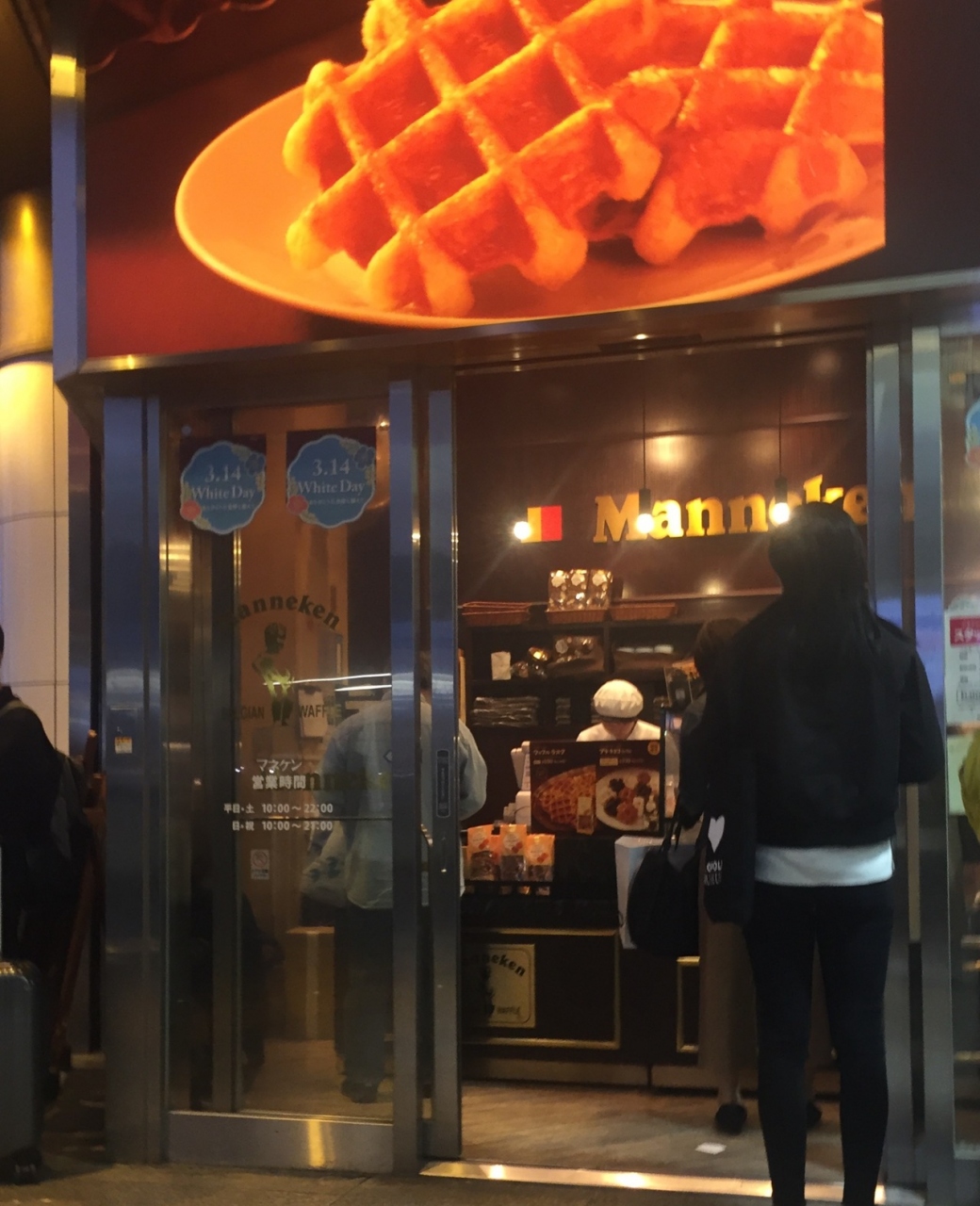 翌日の朝ごはんに食べようと思いワッフルを購入しました。9日の夜6時ごろに行ったらかなり並んでいました。およそ12人程度並んでいて意外と待ちました。期間限定のキャラメルショコラを購入しました。朝ご飯には少し甘すぎました。
