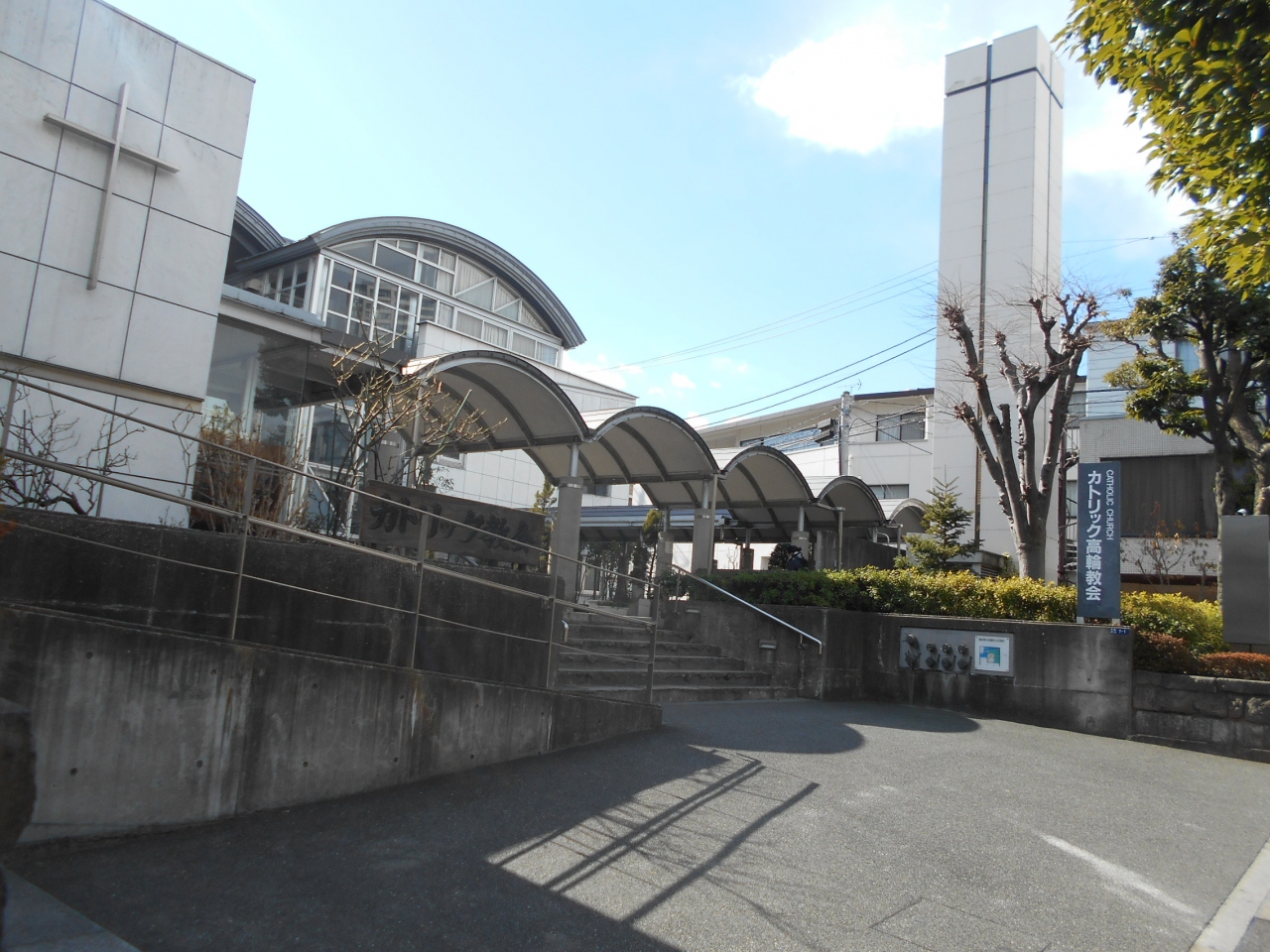 JR品川駅高輪口を出て目の前の横断歩道を渡り柘榴坂を登り切ったところにこちらのカトリック高輪教会はあります。