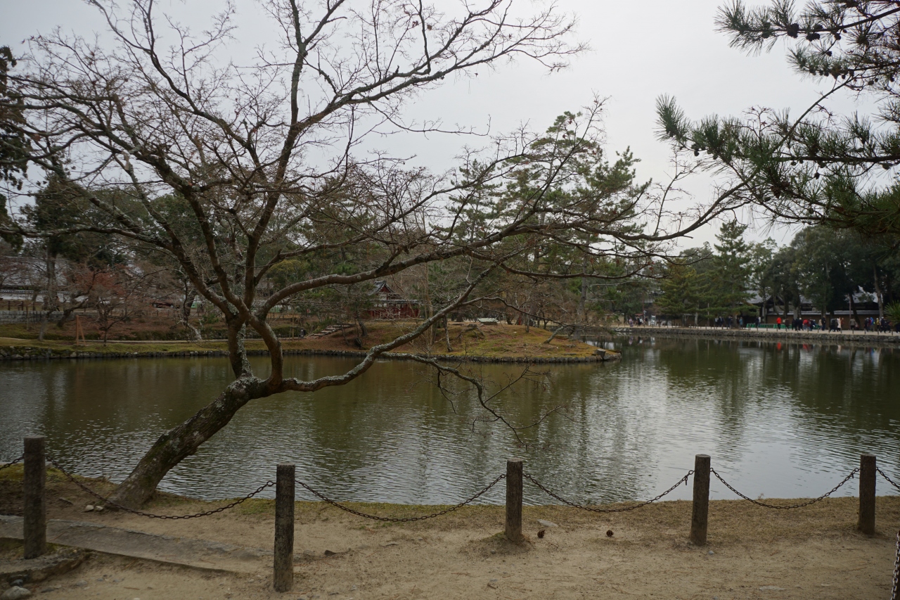 東大寺の鏡池は、南大門から大仏殿に向かう参道の右手に広がる池。この池に映る大仏殿が見どころとなっています。ただ、天気が悪い日はちょっとイマイチでしょう。
