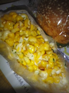 とうもろこしのパンはこれでもかっていうほどトウモロコシが乗ってますw