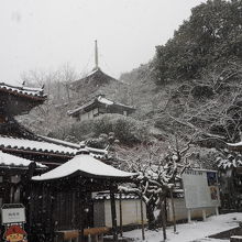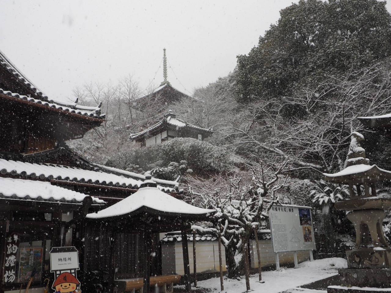 10番札所の「女人即身成仏の寺」として知られている切幡寺は、切幡山の麓の標高155m地点に境内があり、山門をくぐった後本堂のある境内まで333段の石段で上って行きます。この日は雪だったために行きませんでしたがその本堂の更に上に150段ほど上ったところに桃山時代に豊臣秀頼が秀吉の菩提を弔うために建てられた塔を移築した大塔があります。