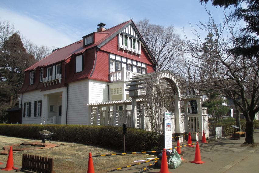 訪れた時は、改修工事の最終段階で建屋周辺の掃除などが行われていて、内部の見学は出来ませんでした。もちろん、内部にある「武蔵野茶房」もやっていなく、リビングで優雅にお茶をと思っていましたが叶いませんでした。3月1日から再開されるとのことでしたので、今はきれいになったデ・ラランデ邸でお茶が飲めると思います。