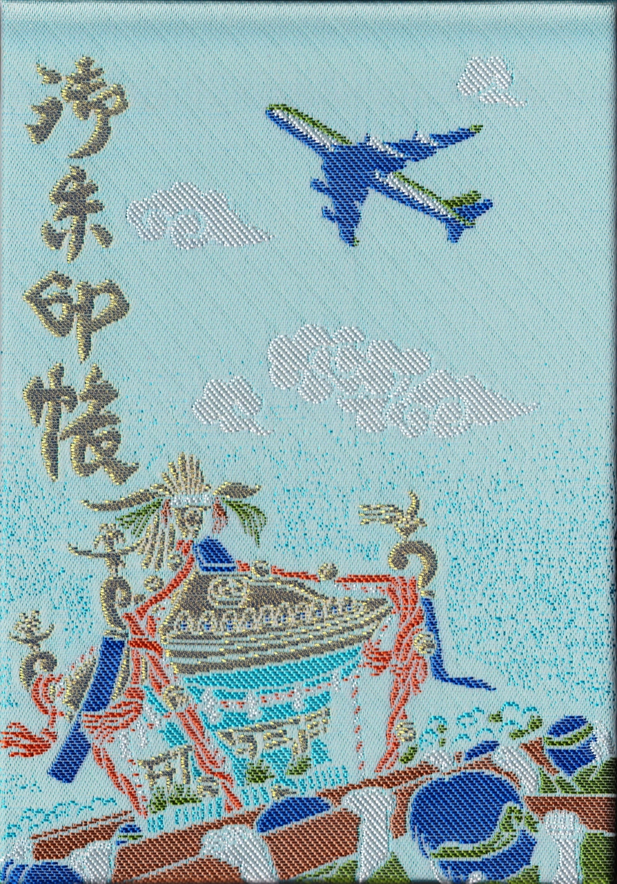今日のお目当てである御朱印帳は、先客がありしばらく待ちましたが、美しく神輿と飛行機がデザインされた真新しい一冊をいただけました。