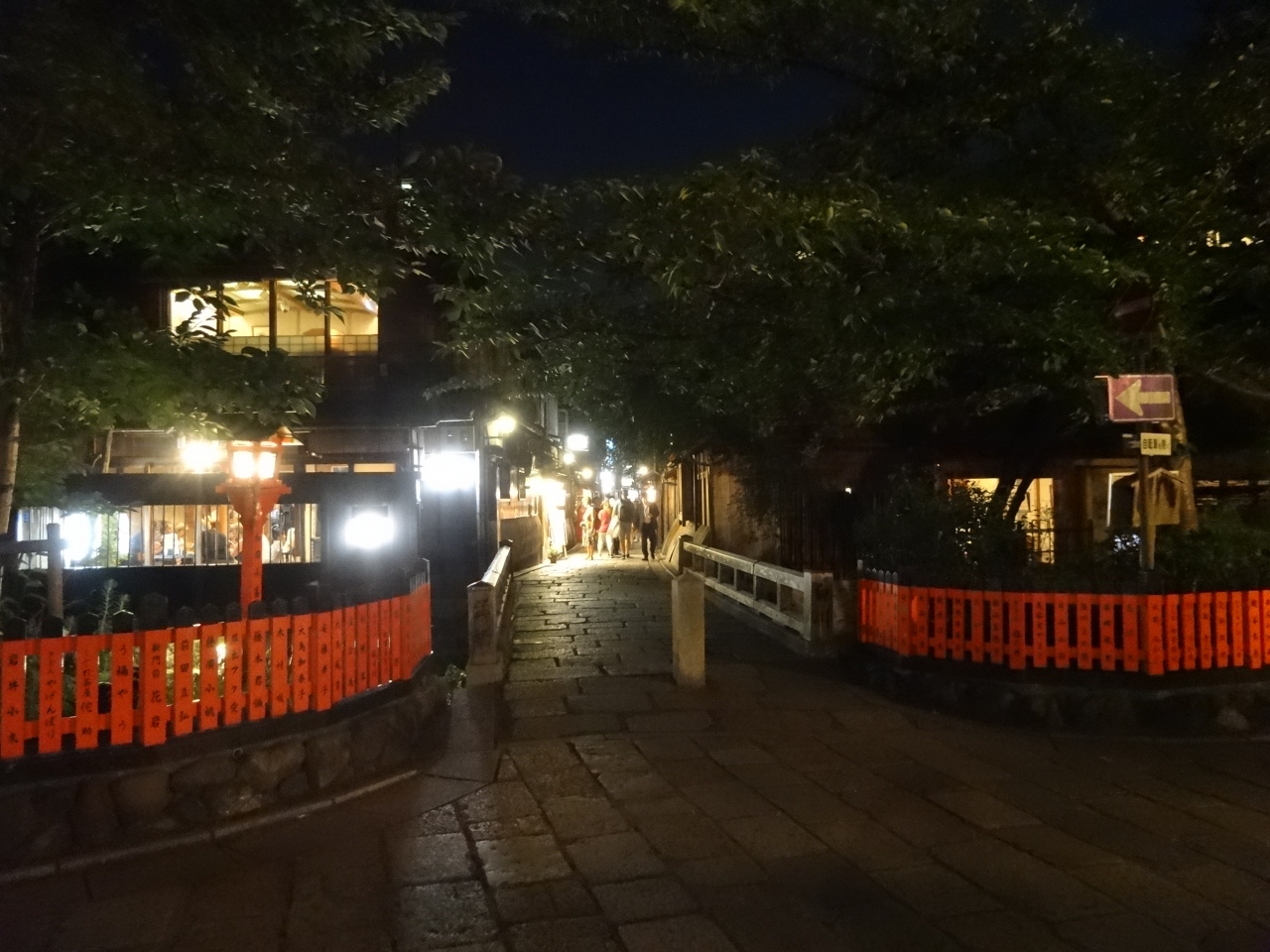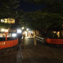 祇園白川地区にある赤い橋で、よくガイドブックやポスター等で見ます。夜に訪問しましたが、暖色系の街灯に照らされてきれいでした。朱塗りの欄干も雰囲気があります。記念撮影にはもってこいのスポットだと思います。