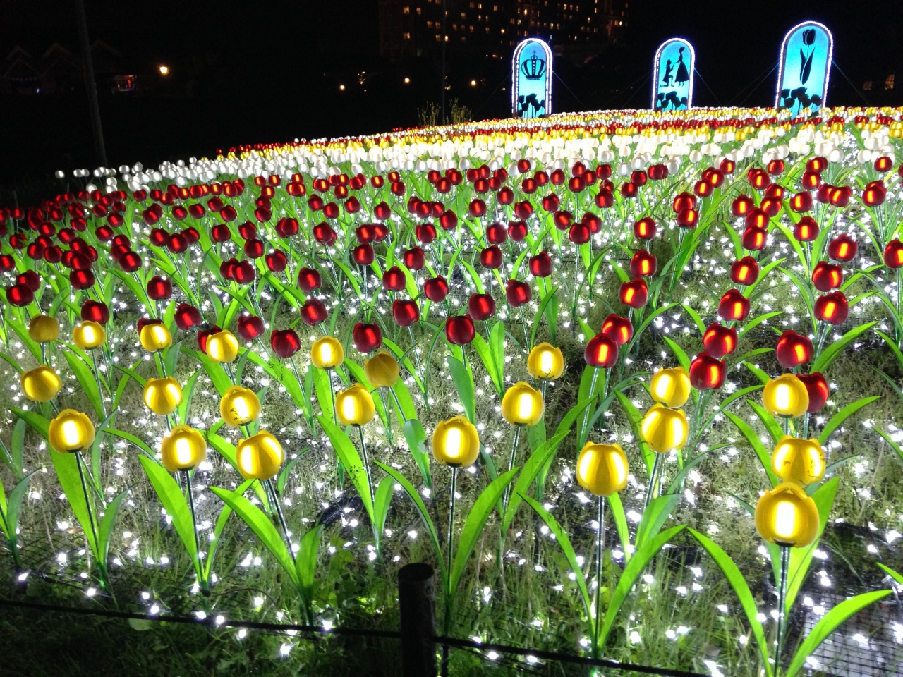 夜のイルミネーションとプロジェクションマッピングで