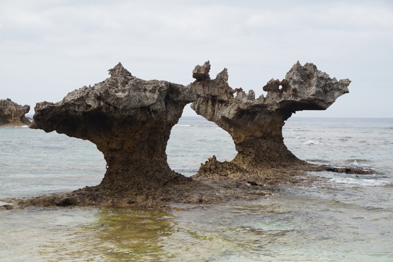 ティーヌ浜の周辺には有料駐車場が100円から300円であります。ビーチサンダルを貸してくれている駐車場だったら絶対借りてください。ティーヌ浜はそこからか砂を持ってきたようなので足がかなり埋まります。ハートロックは左から見ると奥の岩がハートの形。右から見ると前後の岩の間に逆さのハートの空間が現れます。