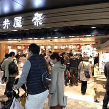 JR東京駅構内の一階、中央の通りにあるお弁当屋さんです。店名に大きく「祭」と書いてありますが、まさにお祭りのようなすごい賑わいで沢山の方がお弁当を選んでいます。