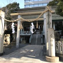 平和大通りと鯉城通りの交差点の一角にある神社です。