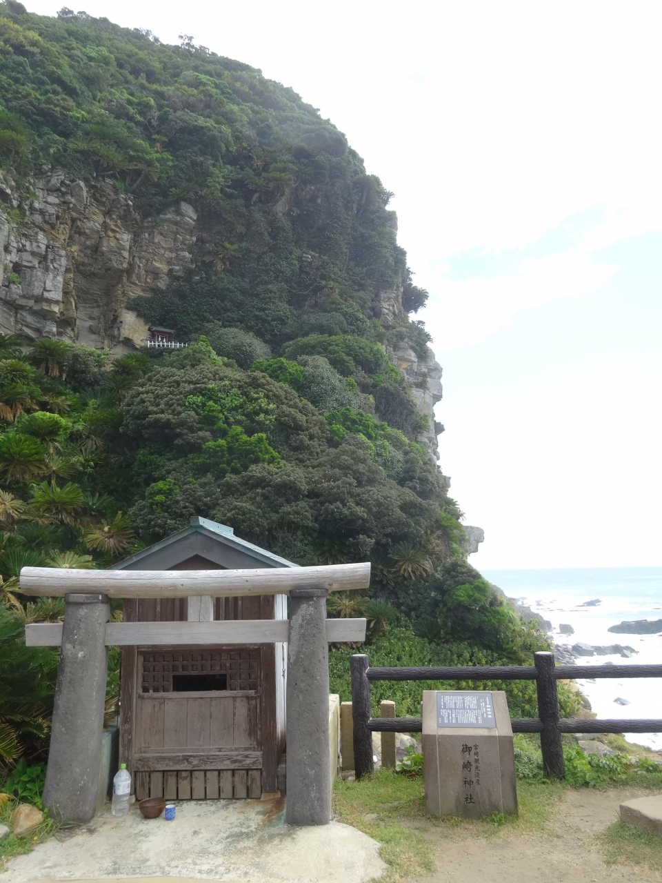 都井岬の海を臨むところに鎮座します。本殿はがけの上にあるのですが、危険なため立ち入り禁止です。代わりに拝殿が設けられているので、そちらへお参りします。風が強いですが、きれいな海やソテツの自生をみられるので、おすすめです。