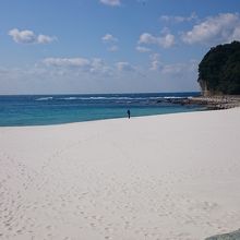 夏の海水浴シーズンになれば人、人、人で溢れかえる海岸ですが、シーズンオフでは人もほとんどおらず、真っ白な砂浜と真っ青な海が広がっているだけです。冬でも暖かい伊豆ですから、天気の良い日にぼおっとしたくなるそんな素晴らしい景色です。