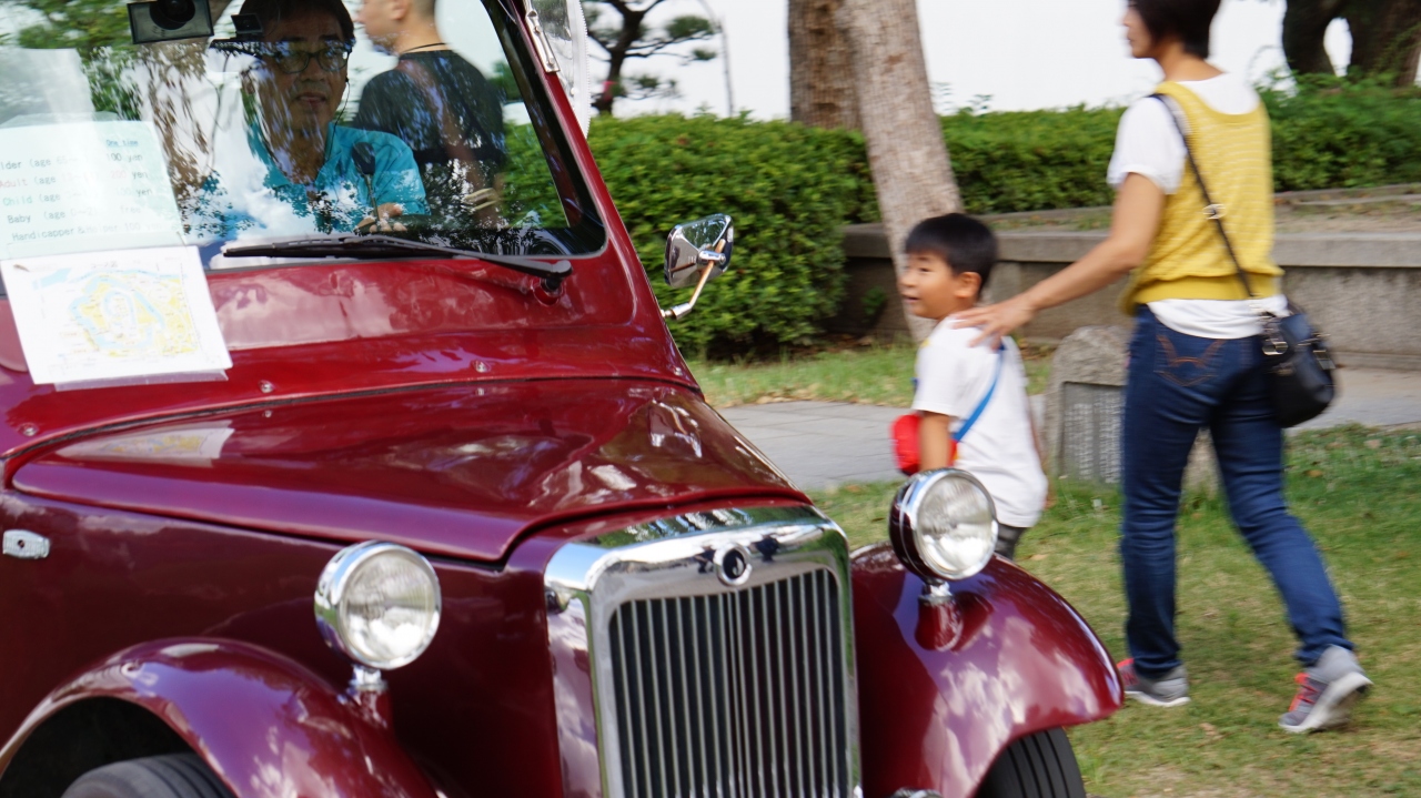 夏休み初日の8月13日に、友達と二人で行きました。公園内はクラシックカーが走っていました。¥200で乗ることが出来ました。何度か遭遇する度に空いていたら乗ろうと友人と話していましたが、日差しの強い暑い日だったので常に車は満席状態。で、結局乗ることは出来ませんでした。小さい子供を連れた家族(大阪弁を話していたので地元の人かな?)や国内からの観光客が居ましたが、一番多かったのは海外からのお客様!クールジャパンを目の当たりにしたような感じを受けました。
