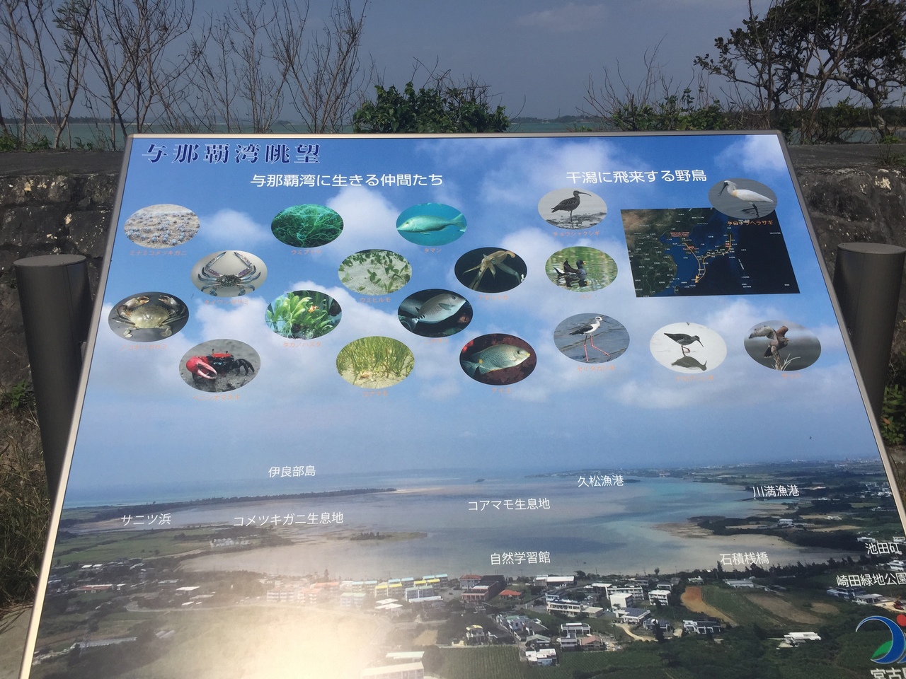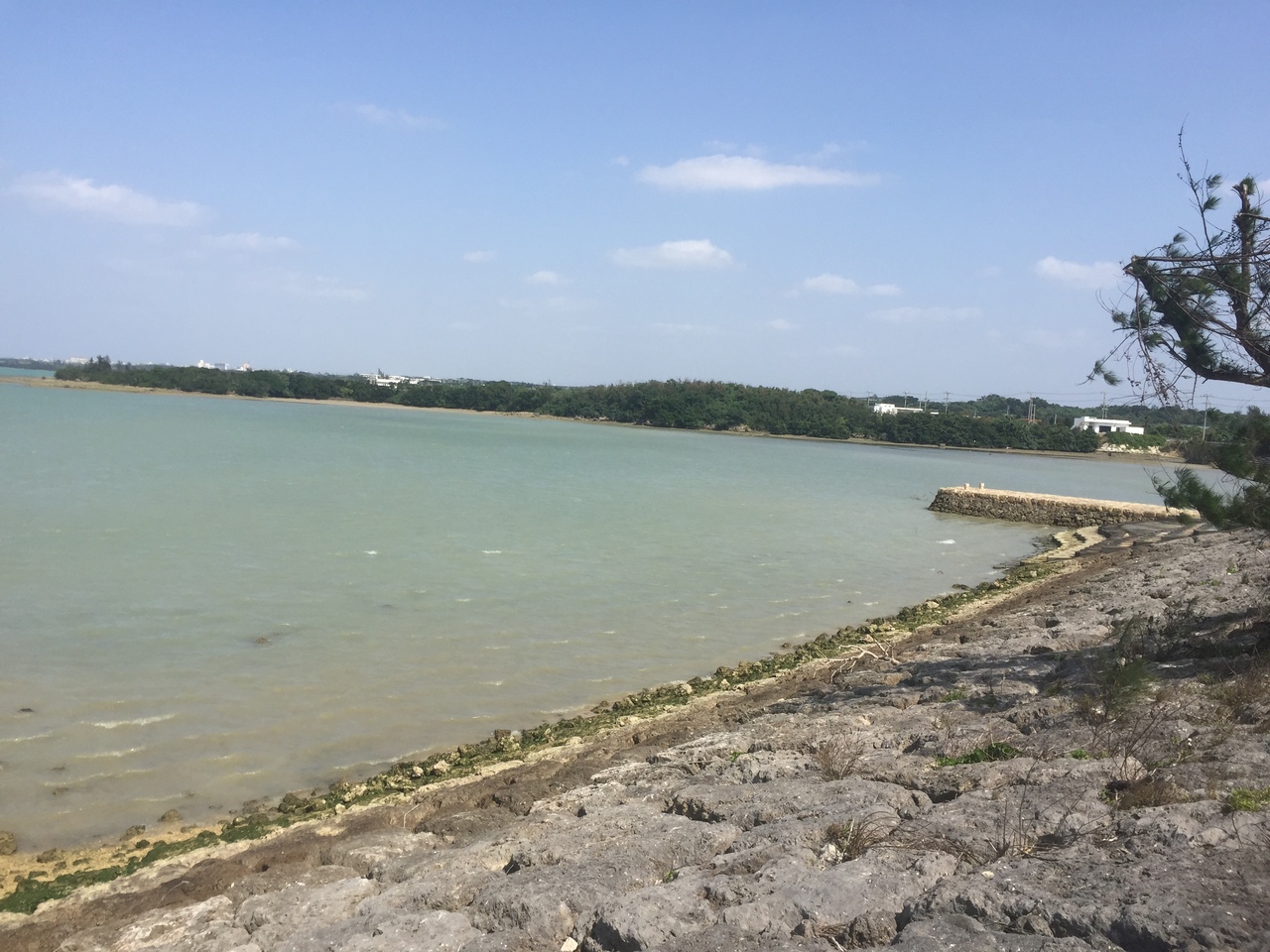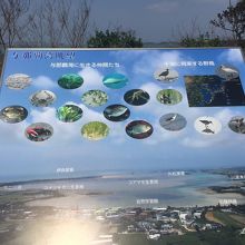 宮古空港から島の中心部の平良地区に向かう際に通ります。小さな湾になっていて干潟で遠浅のため、静かな雰囲気の海です。生態系について説明する案内看板があって、分かりましたが、珍しいカニや魚、そして鳥が見れるそうです。
