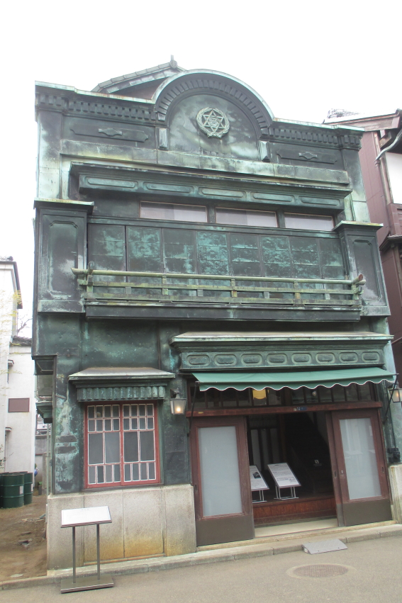表面を銅板で覆った看板建築というものは、現役のお店を見た記憶はありませんが、なぜか懐かしく感じてしまいました。同じ建築様式の建物が、通路の反対側にも花市生花店や丸二商店がありますが、やはり懐かしさを感じます。銅板特有の色調からでしょうか。余計なことかも知れませんが、ほかの商店の建物は「XX屋さん」と案内されているのに、ここは単に植村邸とされてます。貴金属を扱うお店だったそうですが、なぜそのことが案内されていないのか不思議だなと思いました。