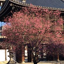 境内も広く、門のところのピンクの梅がとても見事に咲いていました。
