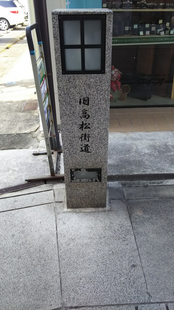 神町商店街を抜けて歩いていると街道をしめす旧高松街道の目印もありました。