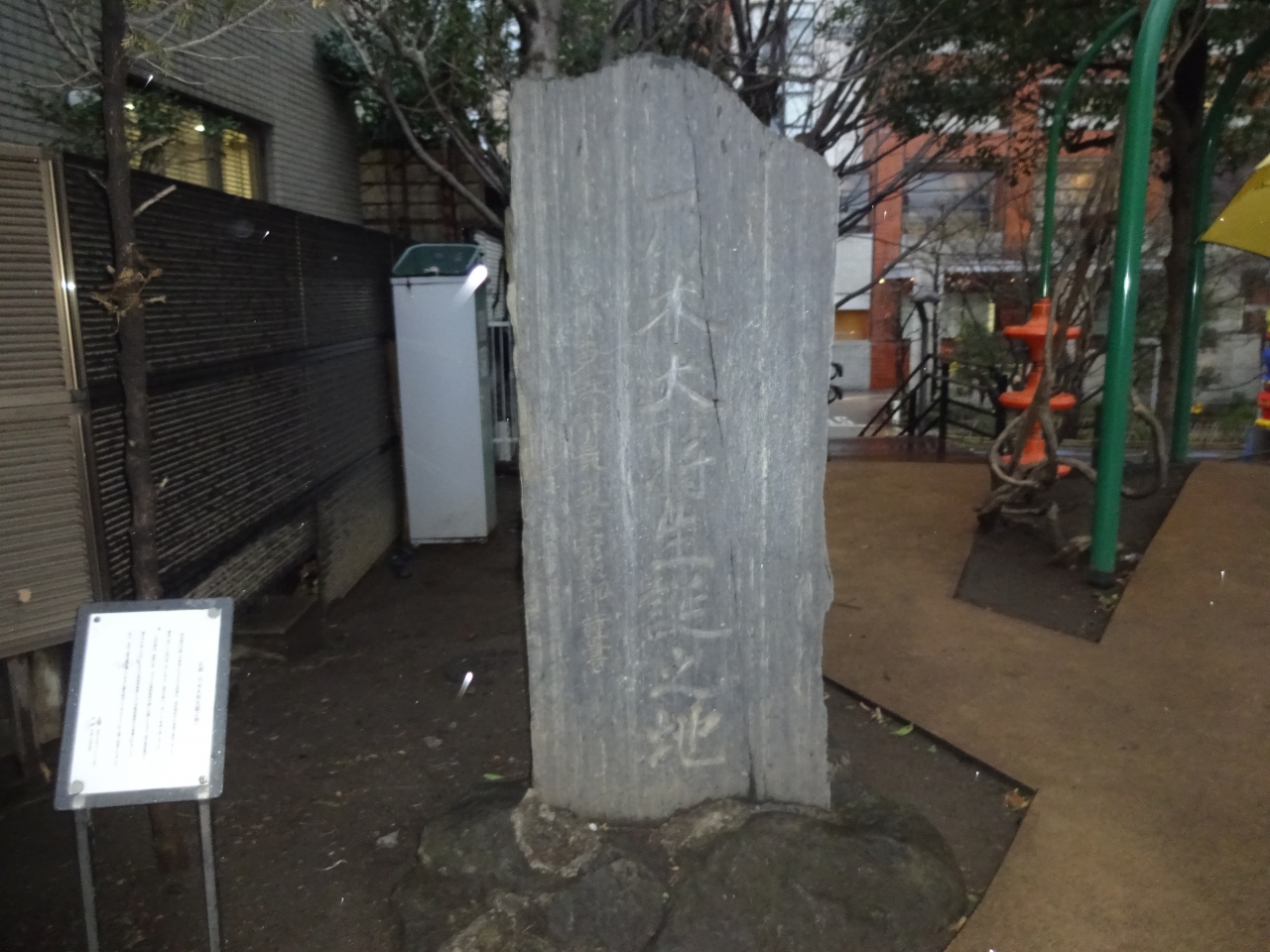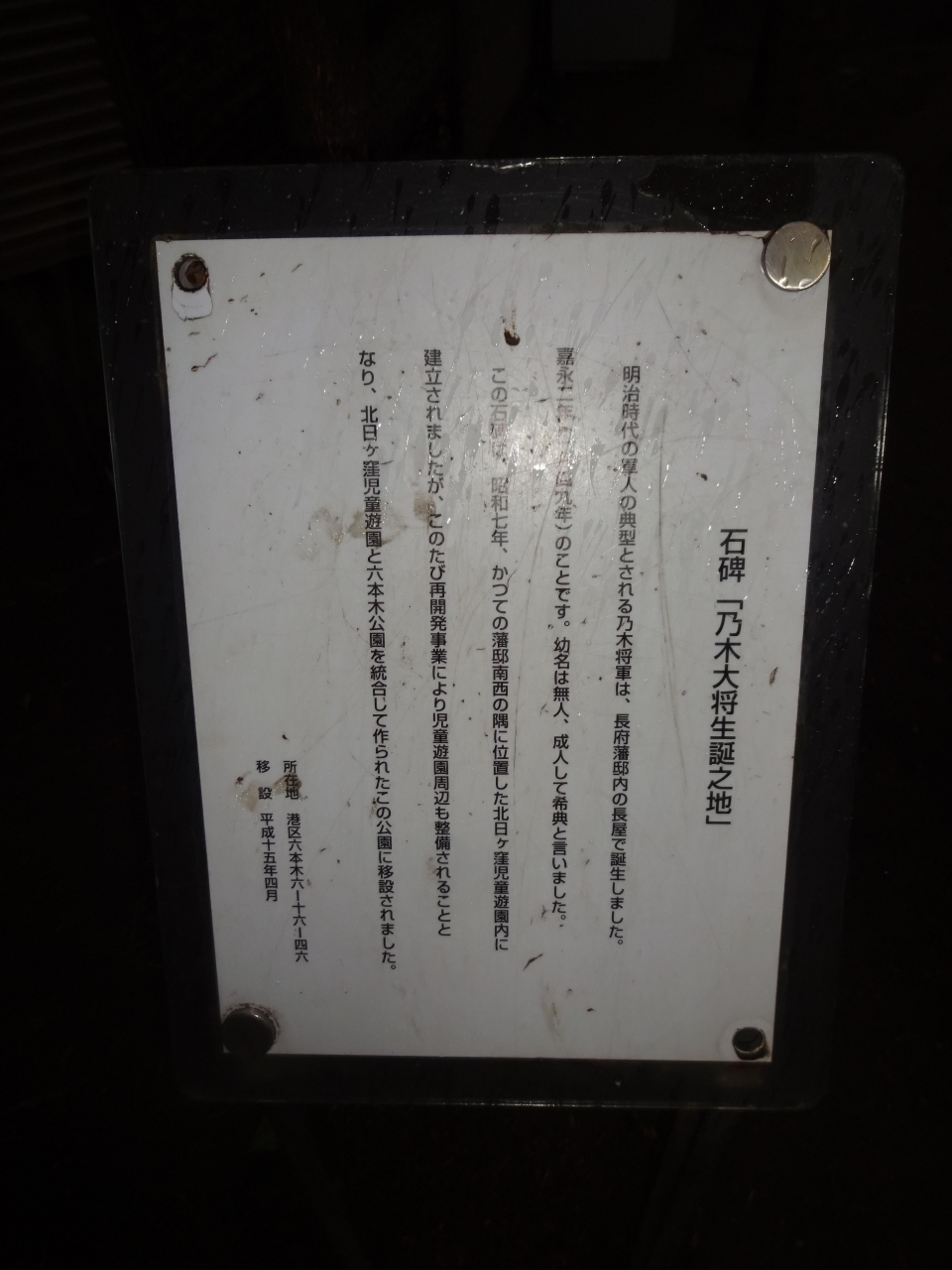 乃木大將生誕の地の石碑は六本木さくら坂沿いにある「さくら坂公園」の片隅に設置されている。