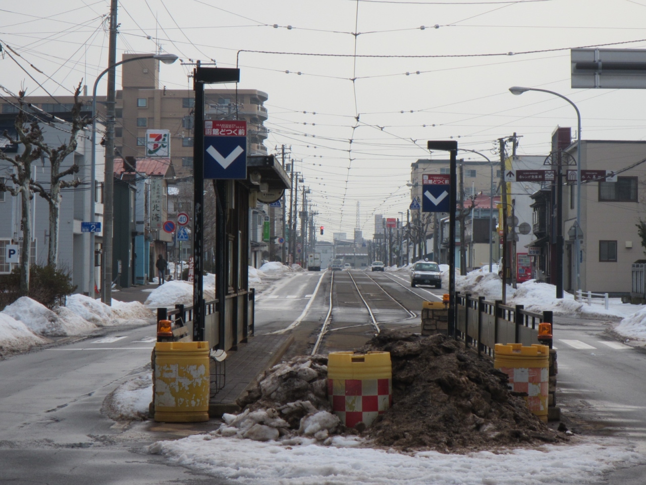 中心部に比べて交通量もさほど多くなく、賑やかさは途絶え、場末の函館の雰囲気が漂います。