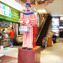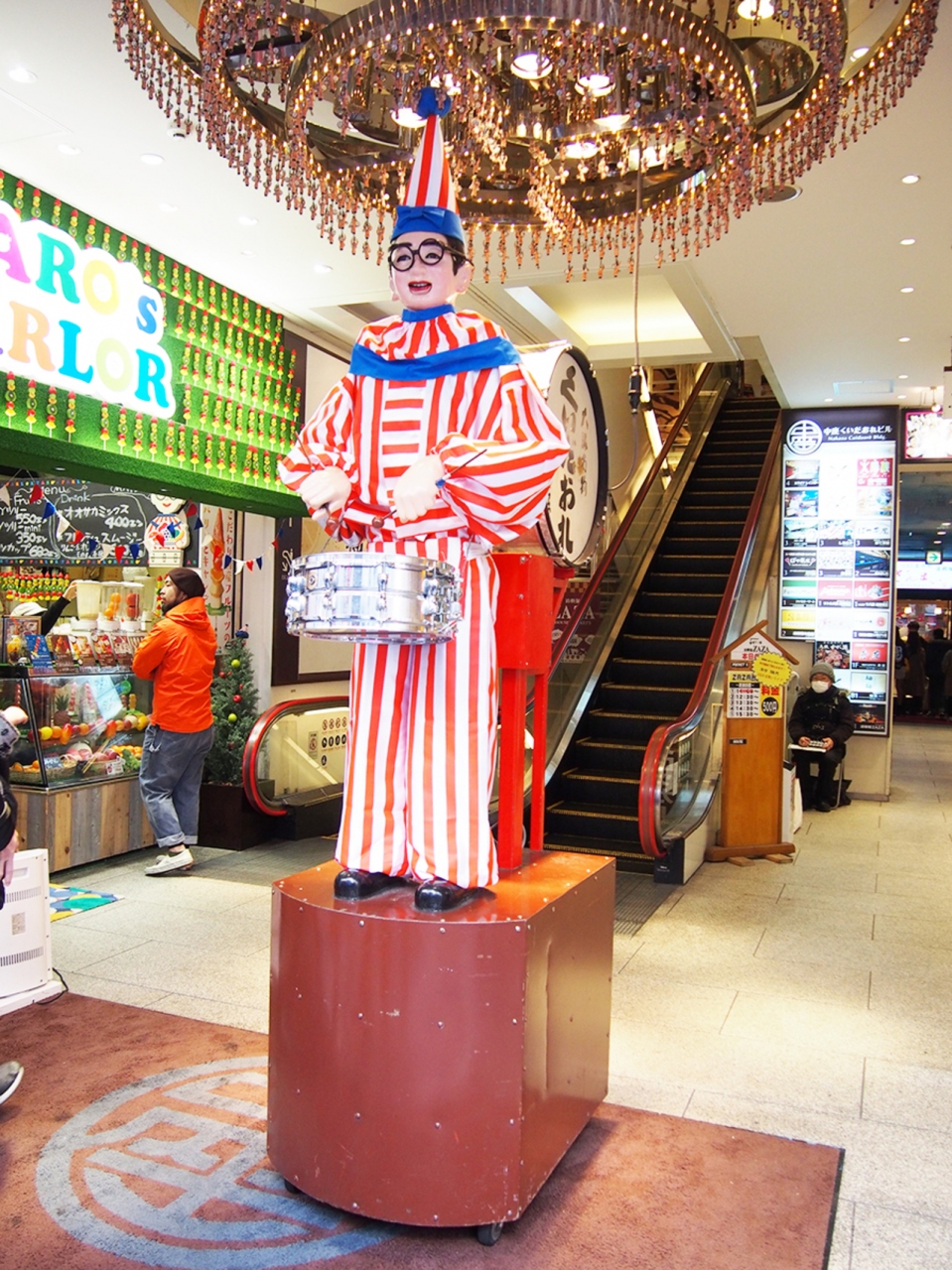 ミナミのシンボルである、くいだおれ人形が立っています。