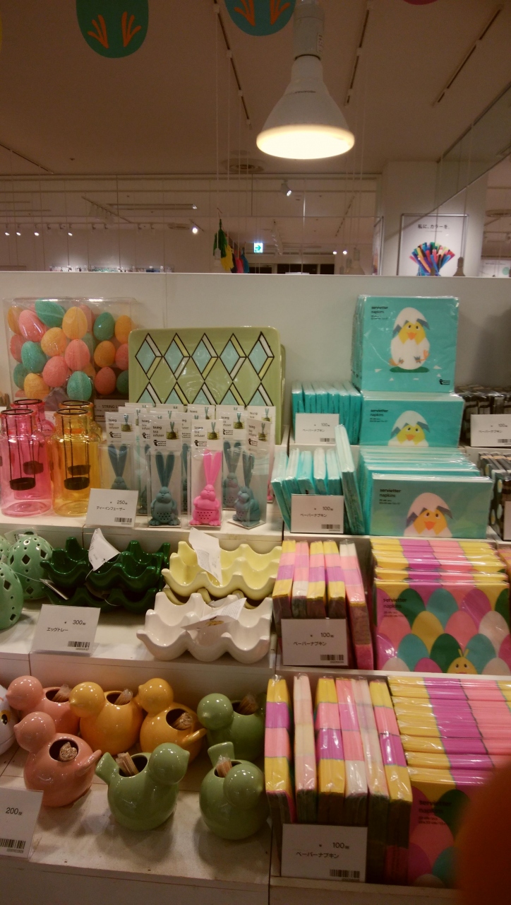 一時期ものすごくお店が増えましたが、池袋とか銀座とか閉鎖される店舗もでてきましたが、こちらのみなとみらいエリアのお店は相変わらずの人気。3月でもうすぐイースターということで、卵にちなんだ商品がいろいろありました。100円ショップなどと違って値段はさまざまですが、いろんな雑貨がリーズナブルにかえます。