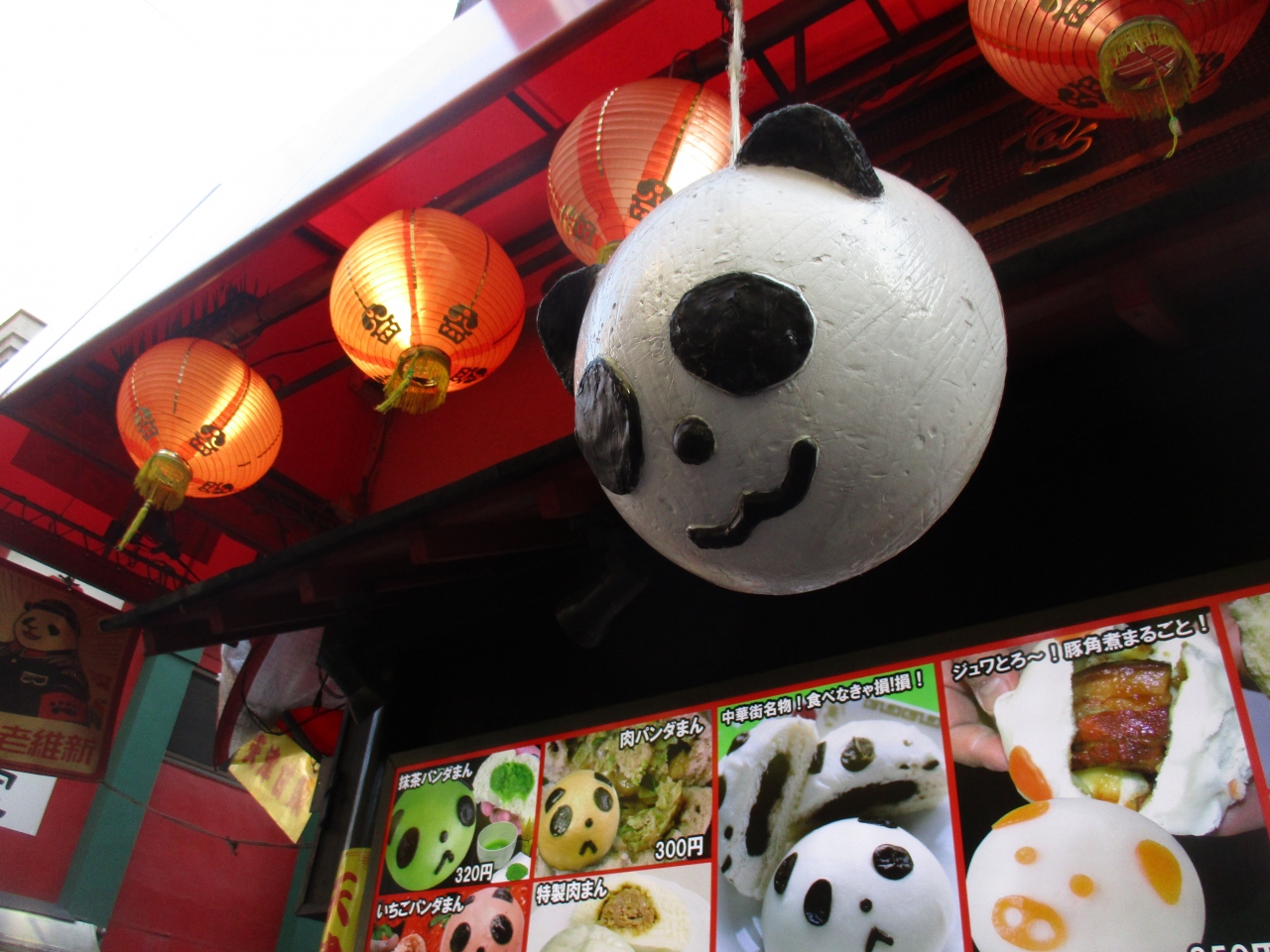 パンダや豚の顔の可愛らしい饅頭を売っています。