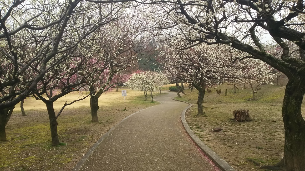 豊田市にある梅の有名な公園。梅のシーズンには臨時駐車場ができるほど盛況です。訪問時は、白牡丹や月影、鹿児島紅がきれいでした。ピンク一色の桜もいいですが、色とりどりの梅も素敵です。古い昔は春の花と言ったら梅を指していたそうですからね。