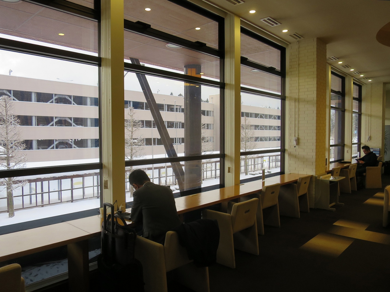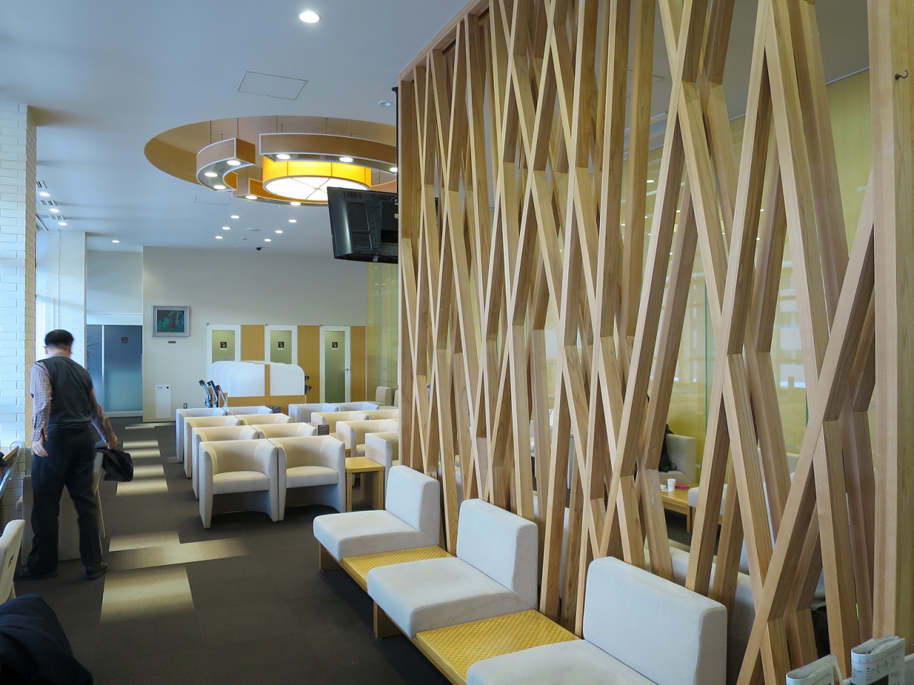 秋田空港には航空会社のラウンジがありませんから、こちらのカードラウンジでフライトを待つことになります。館内は秋田らしく杉材を用いたナチュラルテイストのデザインで、なかなか気持ちよいです。飲み物はソフトドリンクのみですが、その種類も決して多くはありません。有料になりますがビールの自販機もありました。制限区域外にあるため、少し時間に余裕をもって利用する必要がありそうです。