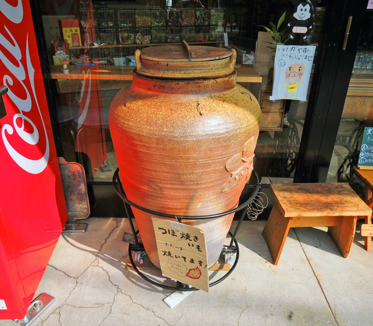 お店の前には大きな壺がドーンと置かれておりまして焼き芋を焼いております。