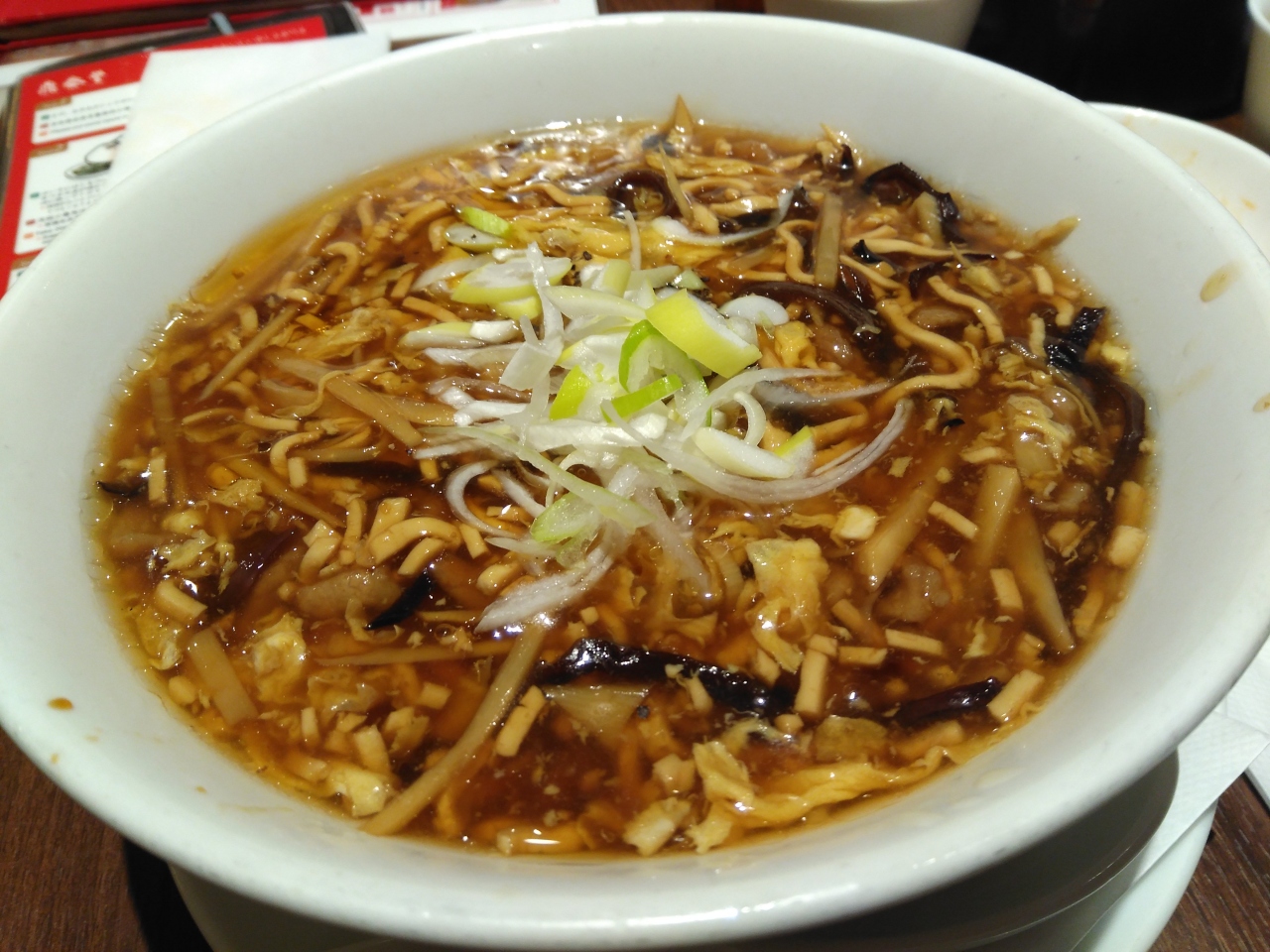 酸辣湯は具が沢山でヘルシー 酸味を足したい時はテーブルのお酢を足してみて