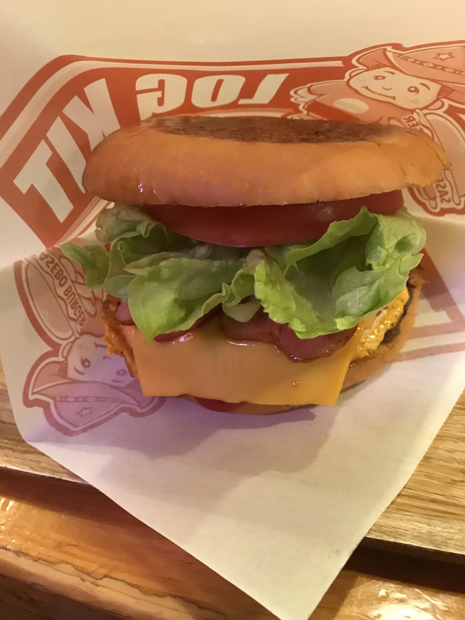 スペシャルバーガーと飲み物を注文。とても大きなハンバーガーが出てきて感激。