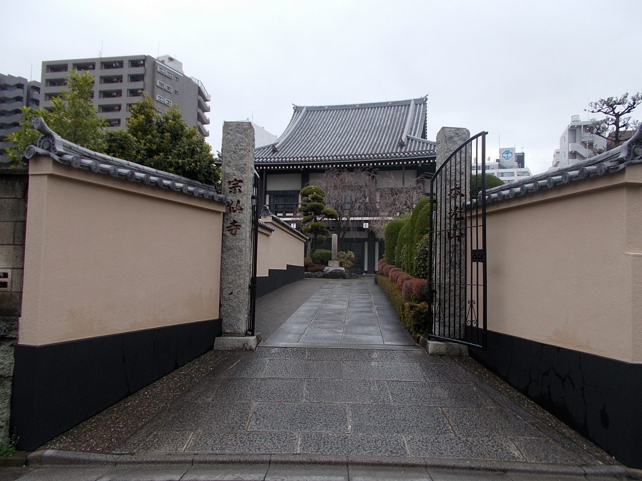 この寺は板橋の四つ又交差点近くにあります。最寄り駅は都営三田線の板橋区役所前駅から約5分程度です。寺は京都で創建されたのですが明治中頃今の地に移転したのです。建物は第二次世界大戦の戦火で焼失しました。現在は再建された建ものです。その中で寺の名が刻まれた石碑があります。それが時の流れの長さを感じさせます。