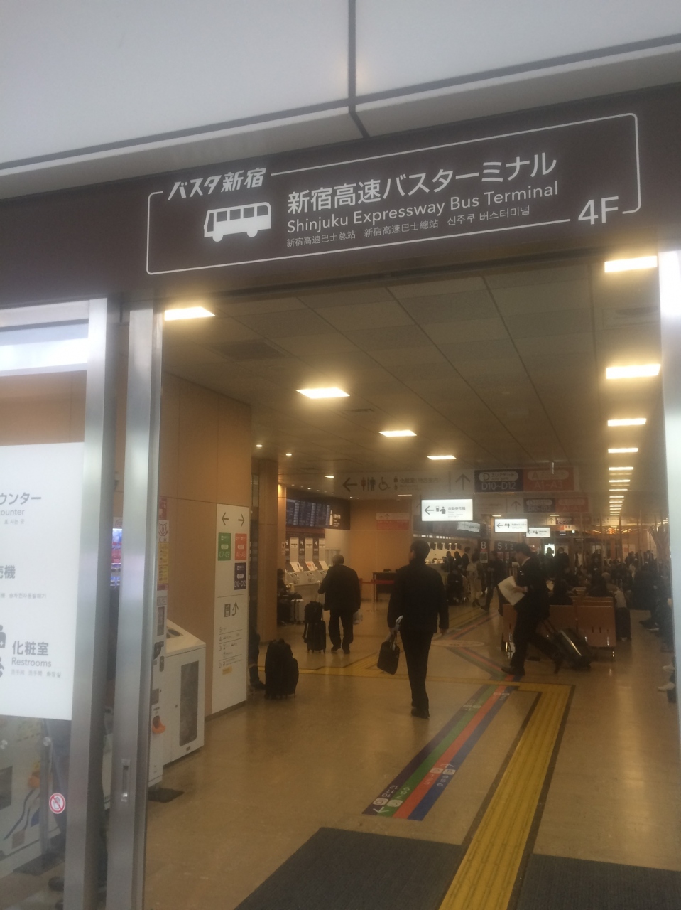 JR新宿駅新南口改札から直結していて4階にあります。ところどころ案内掲示があるので駅までから迷わず行くことが出来ました。館内の床にはエリアごとに色別の表記があり分かりやすかったです。ファミリーマートが併設され、公衆電話、スマートフォンの充電が有料ですがあります。