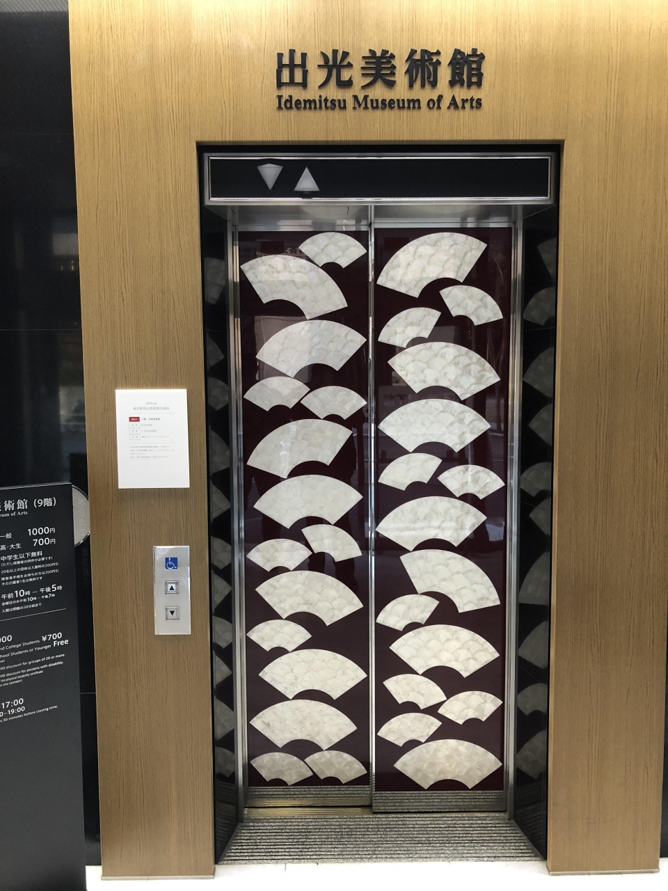 1階から入ると、係りの人が迎えてくれます。エレベーターの扉からして風格が漂っています。聞くところによると、漆に螺鈿で扇を配したものでコーティングしてあるということです。展示室にはこれでもかというくらい立派な陶器の数々、陶片だけで別室に引き出しがあり、びっしりと。窓からはお堀が見えて、ルオーコレクションの小部屋もあり、堪能しました。