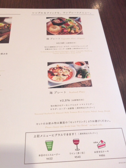 今回は畑ワンプレート2,160円(税抜)を注文
