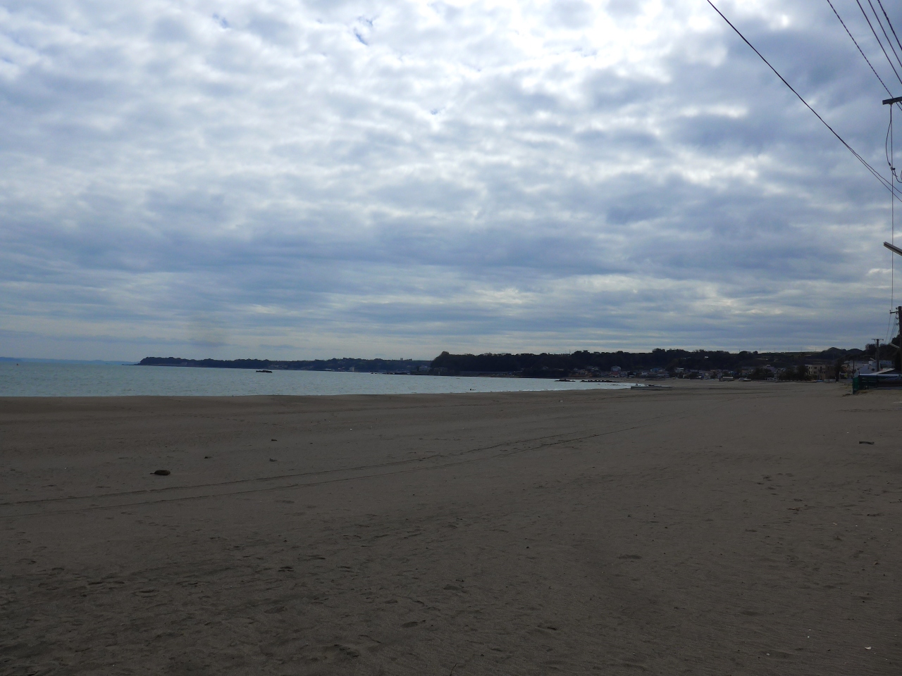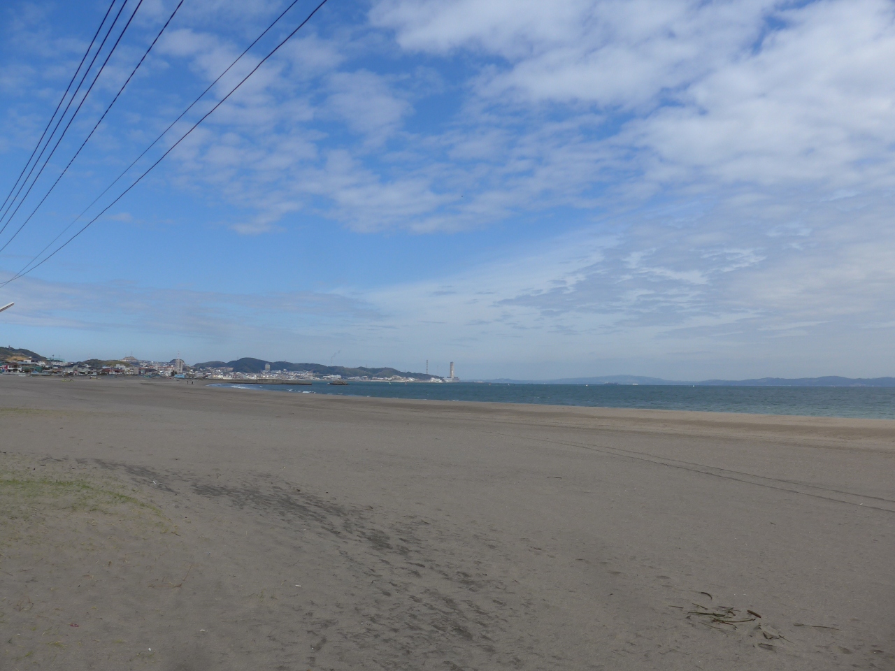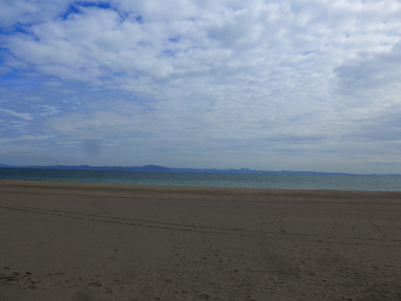 海岸線までの砂浜はとても広くて車も入れるようで車輪の跡がありました。
