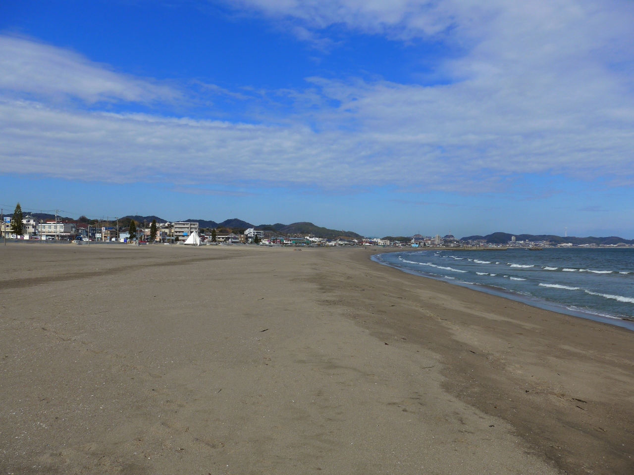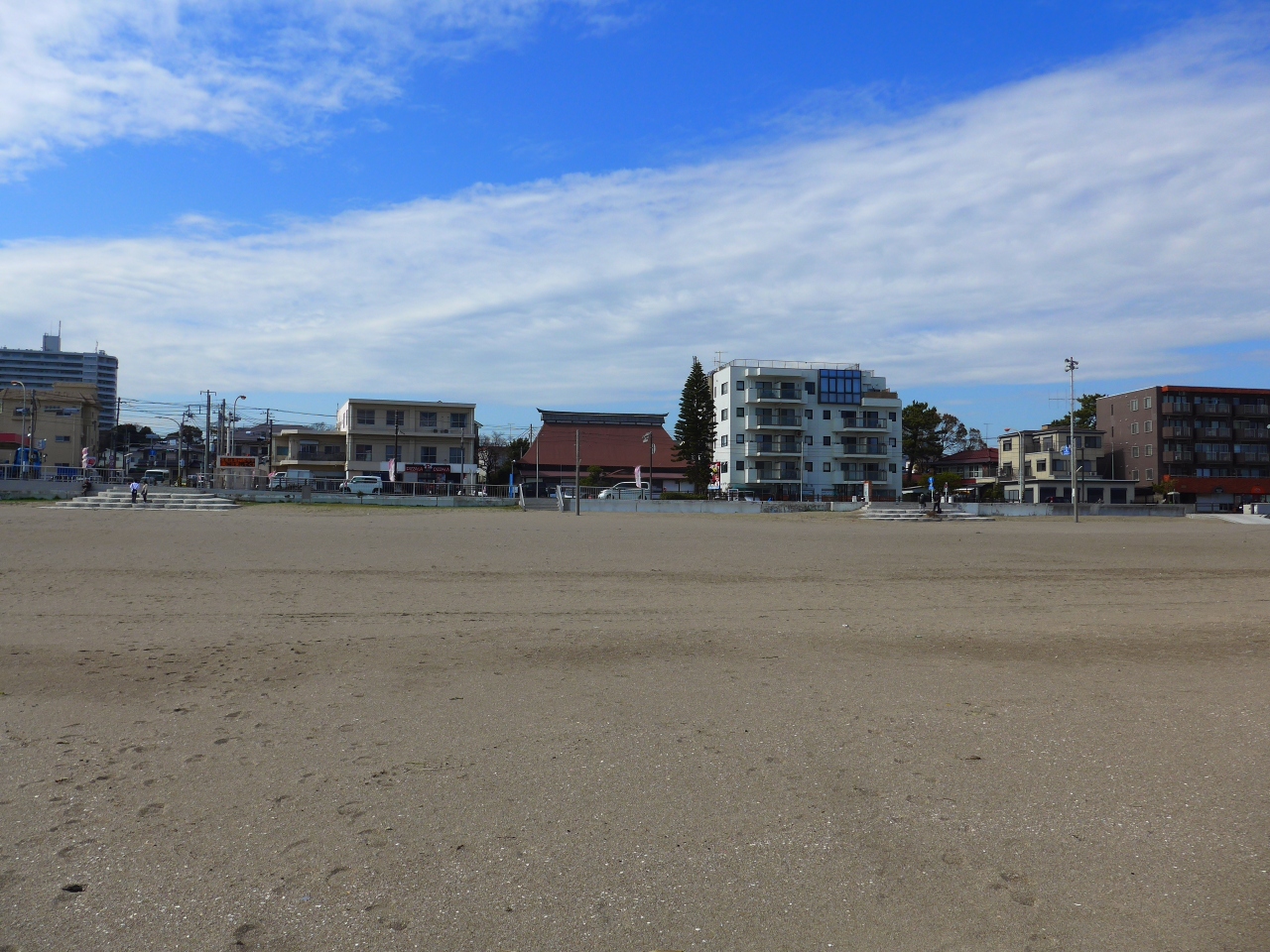 4差路の変形交差点の信号を渡るとそこはもう海岸の砂浜です。