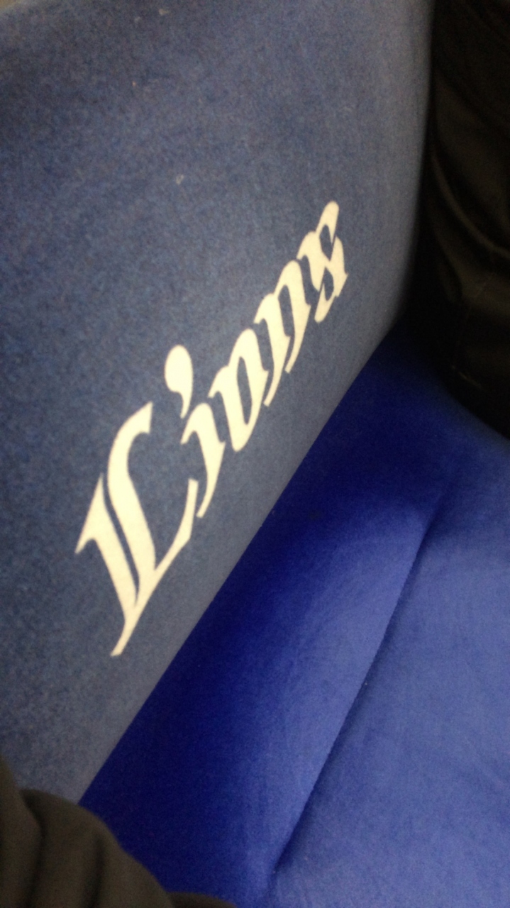 ちょっと座席に古さは感じましたが各座席にライオンズの文字がプリントされています。