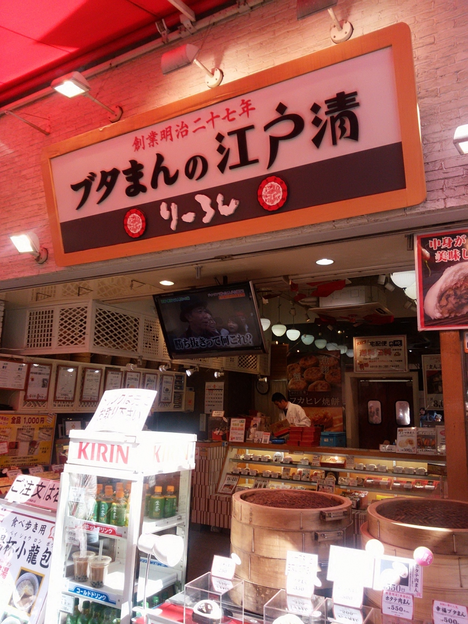 横浜中華街の市場通りにある江戸清です。創業は明治27年と120年以上の歴史がある老舗の肉まん(豚まん)のお店です。このお店は、おみやげ用か食べ歩き用になりますが、できたての肉まんはアツアツで美味しいので特に、食べ歩きには最適です。