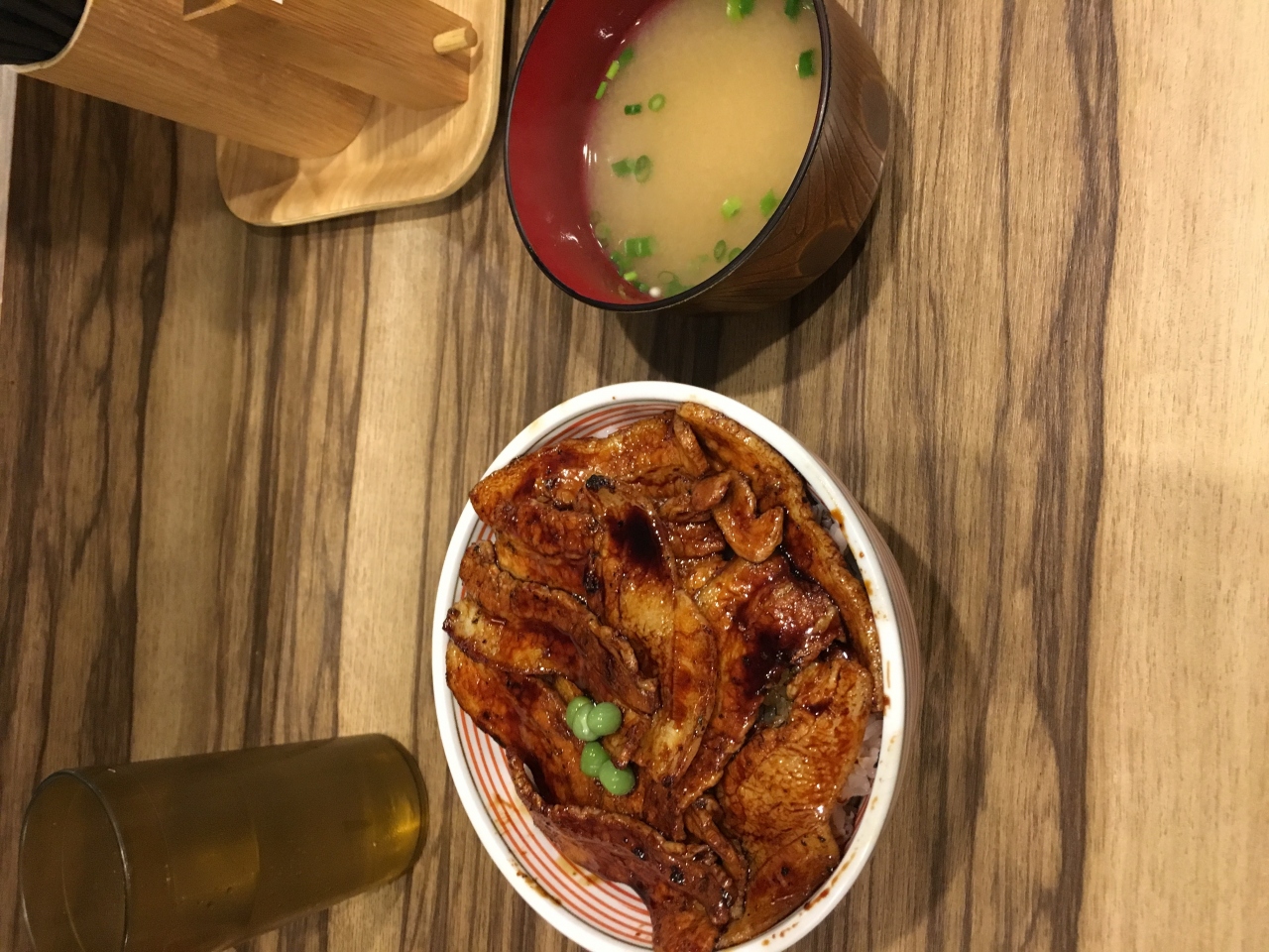 豚丼のみのお店です。カウンターのみで、おしゃれな感じ。豚も注文を受けて、店内のキッチンにて丁寧に焼いて提供してくれます。値段は少し高めで、豚丼と味噌汁しかないので、男性だとお腹一杯にはならない感じです。
