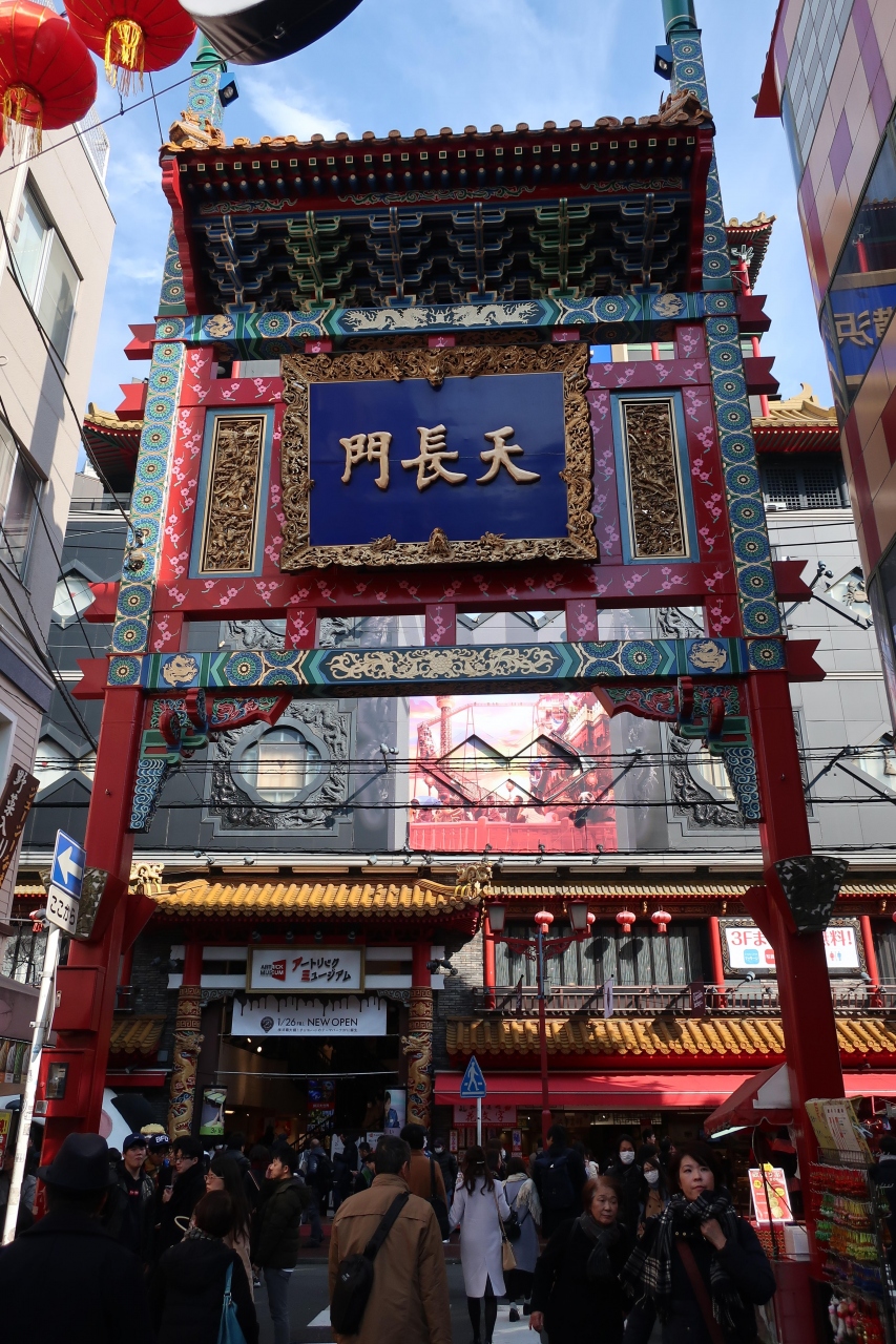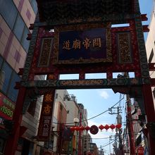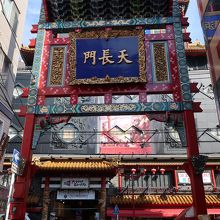 横浜中華街に10基ある牌楼(門)の一つです。關帝廟通りの東側を護る門で、丁度、横浜大世界の正面に位置します。他の門と比較すると細長(高)い門でそれなりに立派なのですが、なんを言っても大きく派手やかな横浜大世界には敵いません。關帝廟通り側から見ると横浜大世界の前にある付属の小さな門の様です。