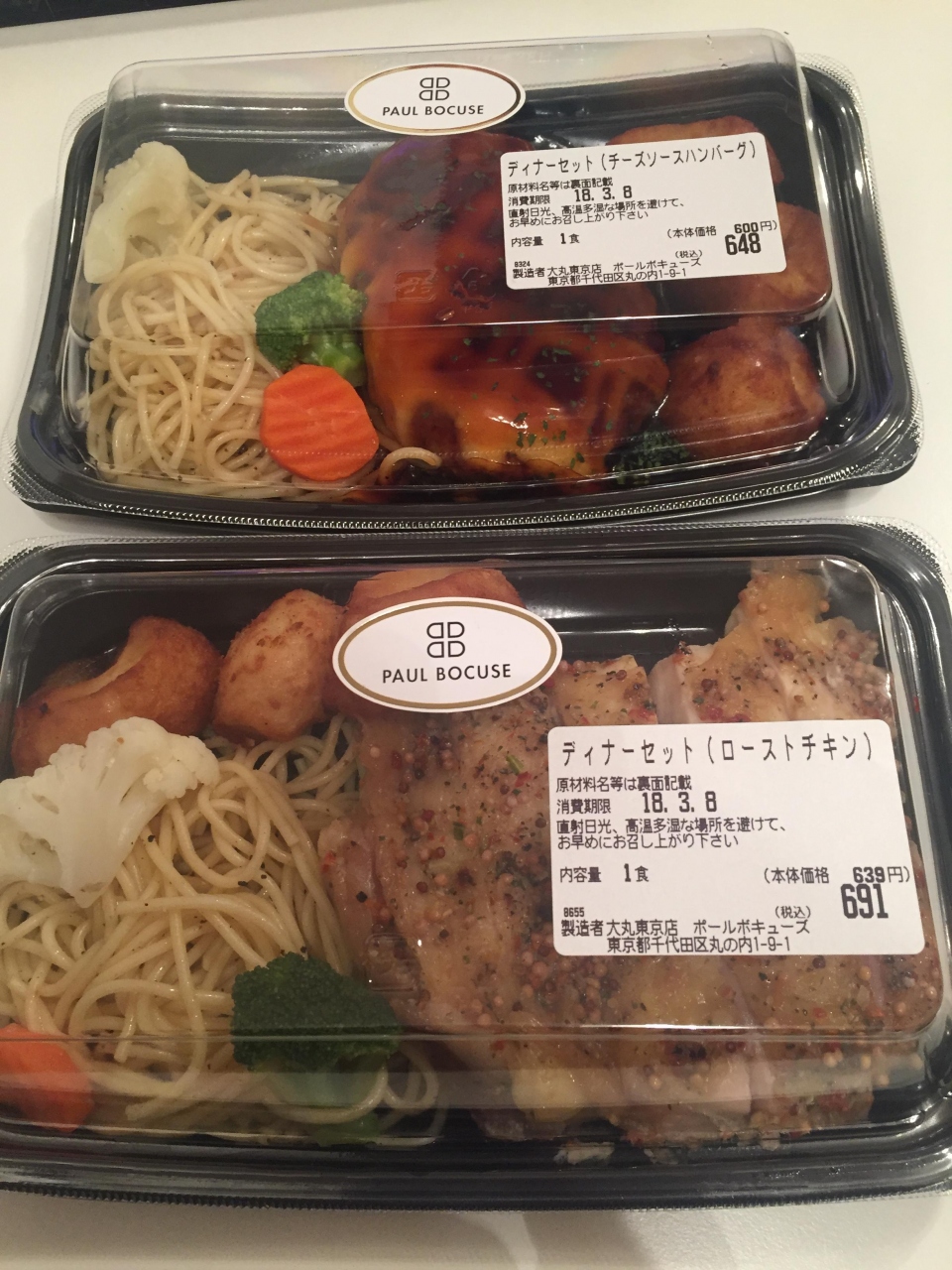 大丸東京の地下1階にある洋食のお惣菜店です。お肉系が中心で単品売りからセット売りまでいろいろ。この日はローストチキンとチーズソースハンバーグのそれぞれディナーセットを購入しました。このディナーセットはメインの他、スパゲッティや野菜も入っていて、他に買い足す必要もなく便利です。他にもお弁当がありました。値段がわりと抑え気味なのも良かったです。