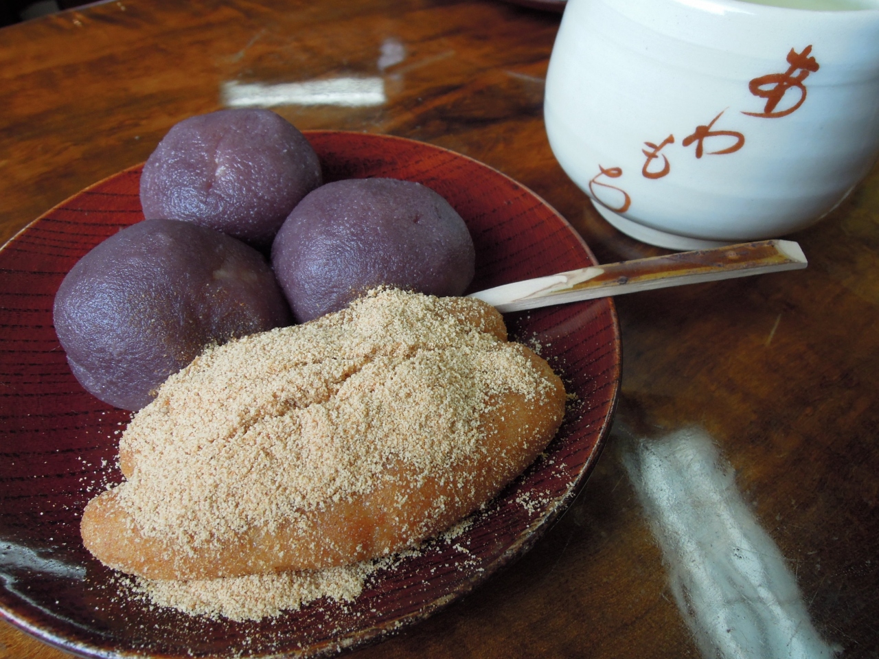 京都の神社仏閣の門前にある、いわゆる門前菓子の代表的な一品。その場で食べることも可能で、あんときなこでくるんだ二種類の餅が一皿で出てくる。あんが丸く、きなこは楕円。柔らかく、五つぐらいはぺろりと平らげることができそうだ。日持ちはしないので、現地ならではの味だ。看板の阿王餅所が読めなかったが、どうやら「あわもちどころ」と読むらしい。
