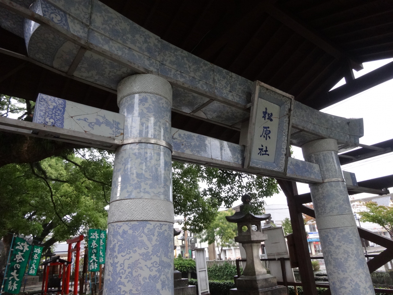 佐嘉神社と松原神社は境内が一体化しています。八社巡りで双方訪れました。県内に陶磁器の郷をいくつも抱える佐賀県らしく、青磁器の鳥居がありました。とても珍しいです。美しい模様が描かれており、佐賀県らしいスポットです。