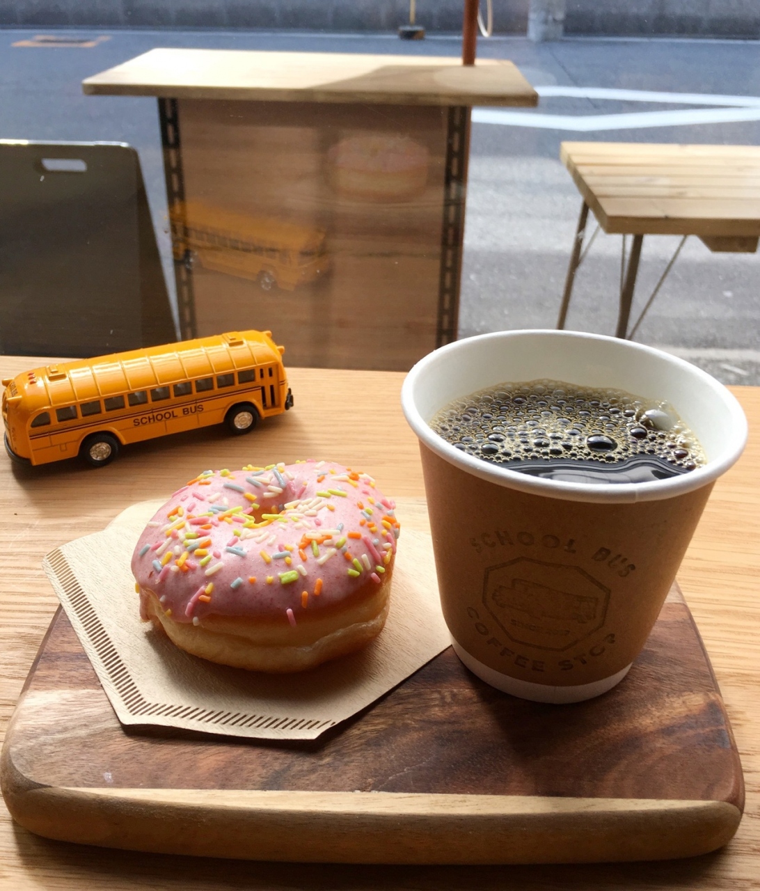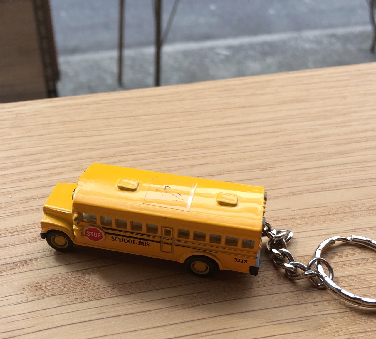 最初にレジでオーダーするセルフ式で、番号札代わりに小さなスクールバスのキーホルダーが渡されます。インテリアも含めてオシャレで可愛いカフェでした。