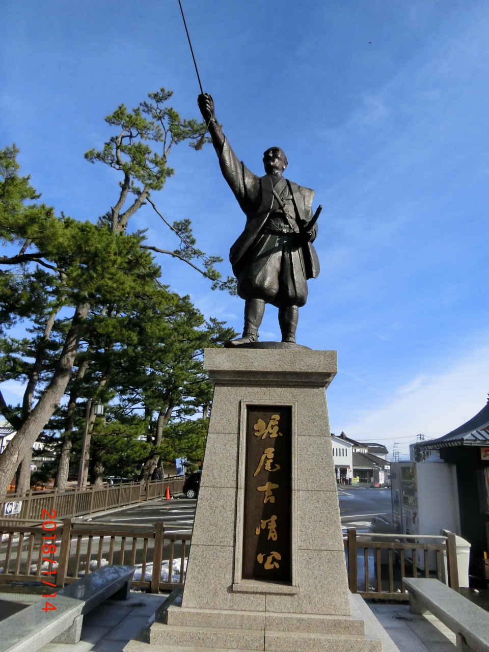松江城の天守閣に登って下りてくると堀尾吉晴公の像がありました。