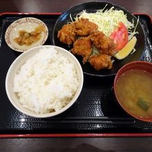 うどん・そば店ですが、餃子定食、唐揚げ定食もあります。敢えて唐揚げ定食650円を注文。
